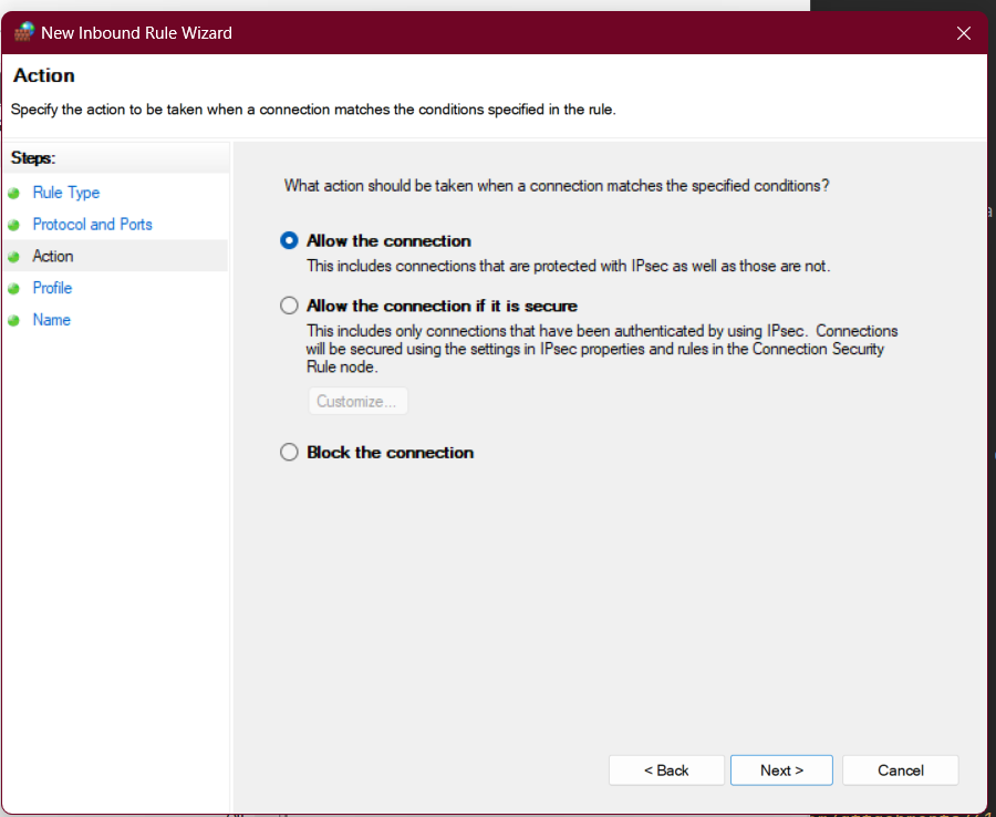 6. Select "Allow the connection" and click "Next". (Example)